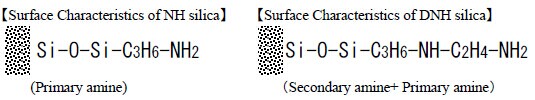 ? ?DNH硅膠鍵合的二元胺和一元胺是NH硅膠的2倍?;谶@個(gè)原因,DNH硅膠的堿度要比NH硅膠強,并且由于碳鏈較長(cháng),DNH硅膠的氫鍵作用要比NH硅膠弱一些。因此,DNH硅膠的流動(dòng)相要選擇極性小的溶劑,因為DNH硅膠的洗脫速度要比普通的裸硅膠和NH硅膠快。