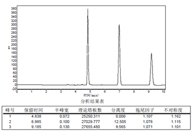 5. 良好的峰形對稱(chēng)性:拖尾因子控制在0.95-1.20。6. 壓力適中,各種HPLC機器均能出色使用。