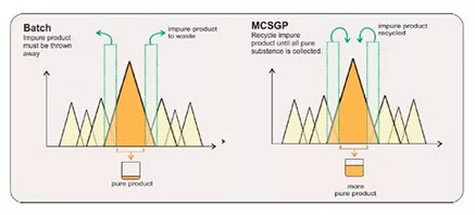 ? ? ? MCSGP工藝,可將含有不純組分的產(chǎn)品回收在一個(gè)封閉的環(huán)內,進(jìn)行循環(huán)式的層析操作,從而最大限度地提取純產(chǎn)品,使得收率和純度二者兼得。