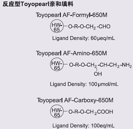 ??? 在溫和的條件下,Toyopearl AF-Formyl-650M(含醛基)唯一與伯胺耦合,形成穩定的仲胺鍵。多種工業(yè)用酶都能固定于含醛基的填料上。通常,工業(yè)用戶(hù)用部分氧化多糖支持物(如纖維素和瓊脂糖)或部分水解聚縮醛合成這些填料。相比之下,TOYOPEARL AF-Formyl-650M是一個(gè)即用型含醛基穩定的大孔徑填料。東曹公司可以保證每批的醛含量以及物理性質(zhì)保持一致。