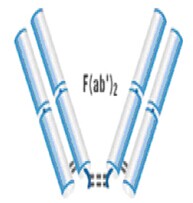 兩個(gè)Fab通過(guò)二硫鍵連接形成F(ab)2。分子量在~100kDa。2011年FDA批準的Centruroides(Scorpion)Immune?F(ab)2是治療蝎毒的F(ab)2抗體片段。