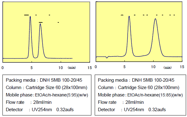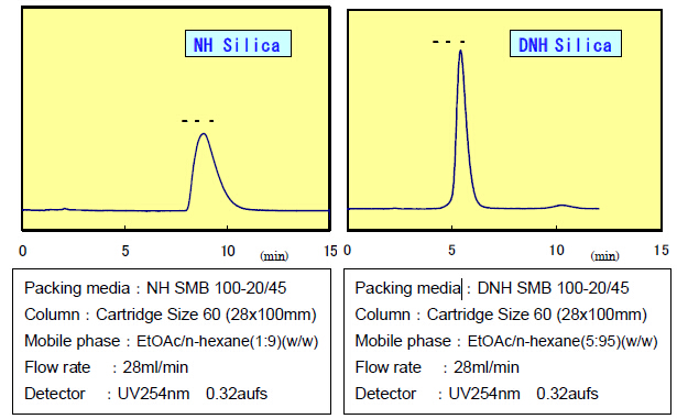 DNH硅膠使用低極性的流動(dòng)相,并且有利于堿性樣品改善峰型