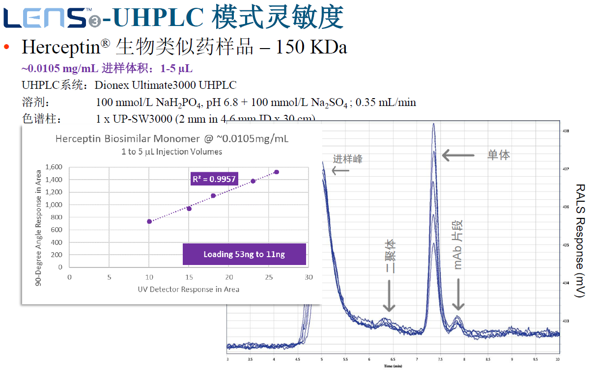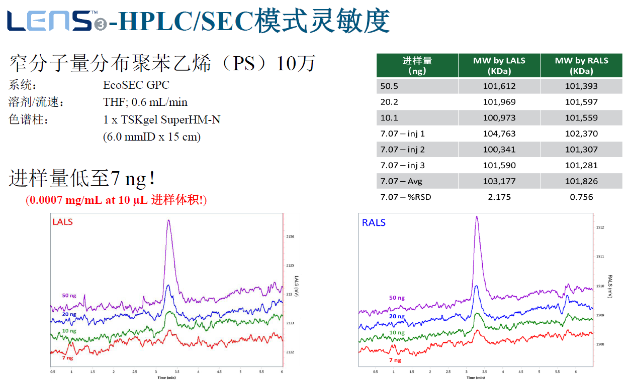 ? ? ? ?光散射是測量聚合物、蛋白質(zhì)、多肽化合物以及其他多種復雜結構大分子的絕對分子量以及尺寸的最常用表征手段。通過(guò)與HPLC或者GPC聯(lián)用,光散射可作為表征和探索大分子的結構、構型和組成的利器 !