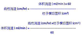 對體積不同的柱子來(lái)說(shuō),體積流速不能直接用作比較,一般都換算成線(xiàn)性流速,再做比較: