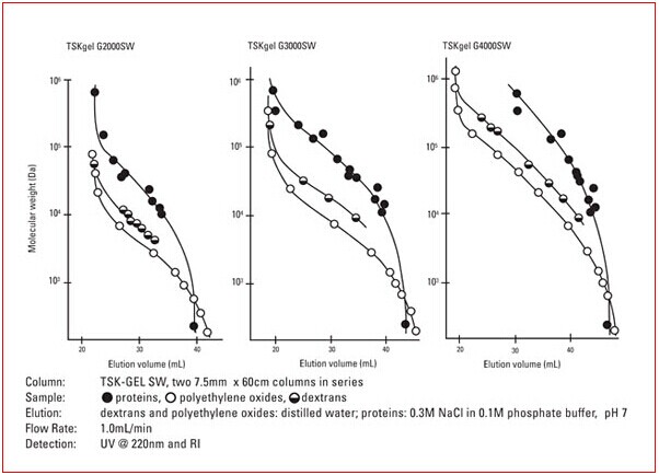 TSKgel SW柱的聚氧化乙烯、葡聚糖和蛋白質(zhì)校準曲線(xiàn)