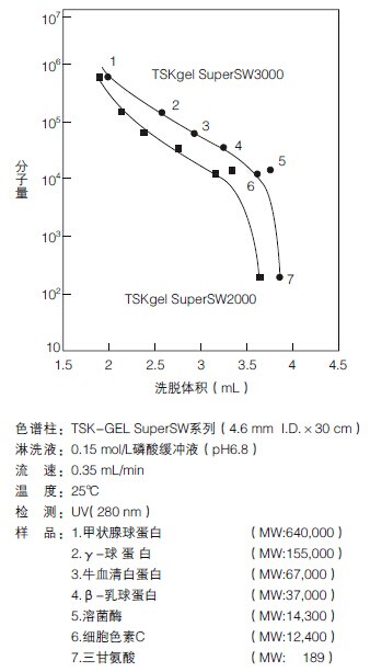TSKgel SuperSW柱的蛋白質(zhì)校準曲線(xiàn)