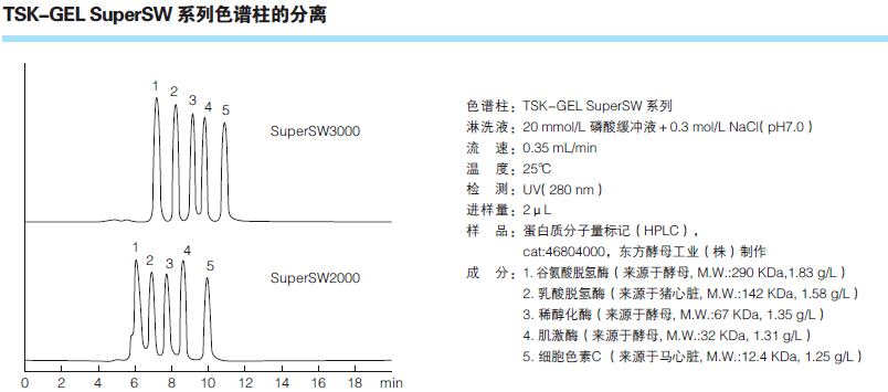 3. TSKgel SuperSW柱有內徑為4μm的顆粒,能實(shí)現最高分辨率。窄至4.6mm內徑的柱能在一定量的樣品質(zhì)量范圍內提高高靈敏度。
