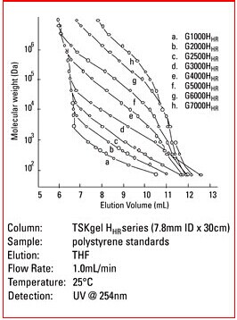 3. Hhr型色譜柱為常規的GPC色譜柱,尺寸為7.8mm ID x30cm。當使用此類(lèi)常規色譜柱時(shí),大多數的HPLC系統無(wú)需進(jìn)行針對柱外峰展效應的優(yōu)化。