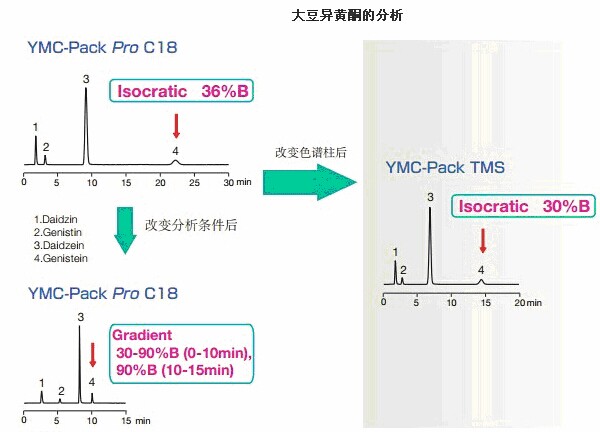 使用TMS色譜柱對疏水性波動(dòng)大的化合物進(jìn)行分析時(shí),可大大縮短分析時(shí)間。