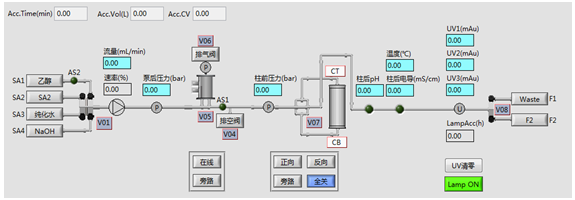 層析系統軟件符合新版GMP規范,采用圖形化界面、全自動(dòng)操作,簡(jiǎn)明扼要,任何操作及狀態(tài)均可實(shí)時(shí)顯示在主界面狀態(tài)欄中,自動(dòng)化程度高。結合了大量的容錯性設計,貼合生產(chǎn)實(shí)際,降低了對研發(fā)人員的技能要求。