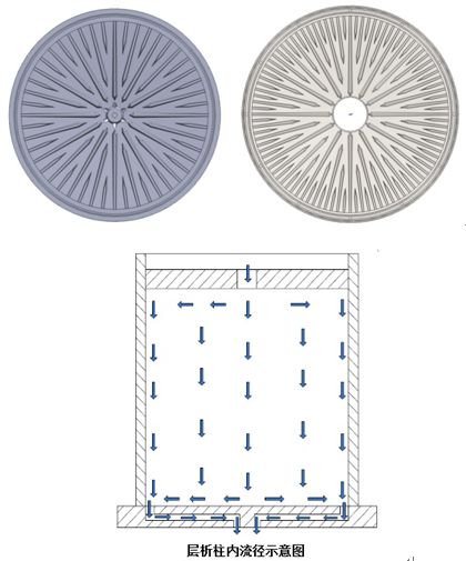 分配器按照現代機械設計先進(jìn)理念進(jìn)行的,流體動(dòng)態(tài)仿真、優(yōu)化設計、可靠性設計、虛擬設計、三維造型、產(chǎn)品全壽命周期設計,使得產(chǎn)品性能得到有一種單一的中央噴口和一種徑向導流槽。防直噴的噴口與導流槽做在了一起,定位在每個(gè)單元的中心,防止噴出的液體直接進(jìn)入柱管而不通過(guò)分配器。獨特的分配器設計,保證所有流徑長(cháng)度相同,從而更有效地保證分配效果。