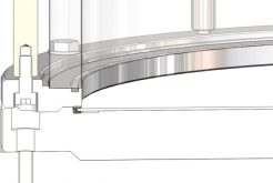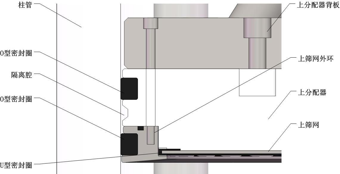 層析柱密封結構主要考慮密封的可靠性、有效面積最大化和死體積的最小化三個(gè)方面。柱頭的密封形式如下圖所示,柱管與移動(dòng)的柱頭之間采用雙層O型密封圈進(jìn)行密封,起到雙重密封的作用。