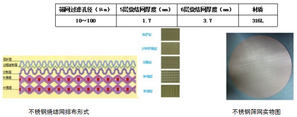 上下篩網(wǎng)為多層結構的不銹鋼燒結網(wǎng)。 與聚乙烯篩網(wǎng)不同:聚乙烯篩網(wǎng)為疏水性質(zhì),需要在裝柱前充分潤濕,而不銹鋼篩網(wǎng)則不需要提前潤濕。不銹鋼燒結網(wǎng)由保護層、過(guò)程控制層、分散層及2~3層補強層燒結而成。