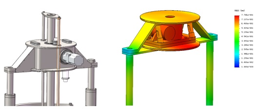 通過(guò)大量的仿真計算,我們得出了可靠的橫梁結構設計,保證設備耐壓5bar時(shí),柱頭變形不超過(guò)2mm。