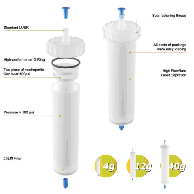 SD-0000-040 | EasyLok固體上樣空柱,上下濾片,O型圈,40g | 26×125 |